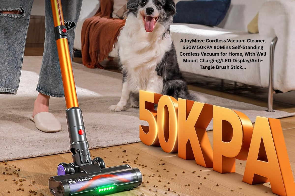 AlloyMove Cordless Vacuum Cleaner, 550W 50KPA 80Mins Self-Standing Cordless Vacuum for Home, With Wall Mount Charging/LED Display/Anti-Tangle Brush Stick Vacuum for Carpet/Pet Hair/Hardwood Floor, A05